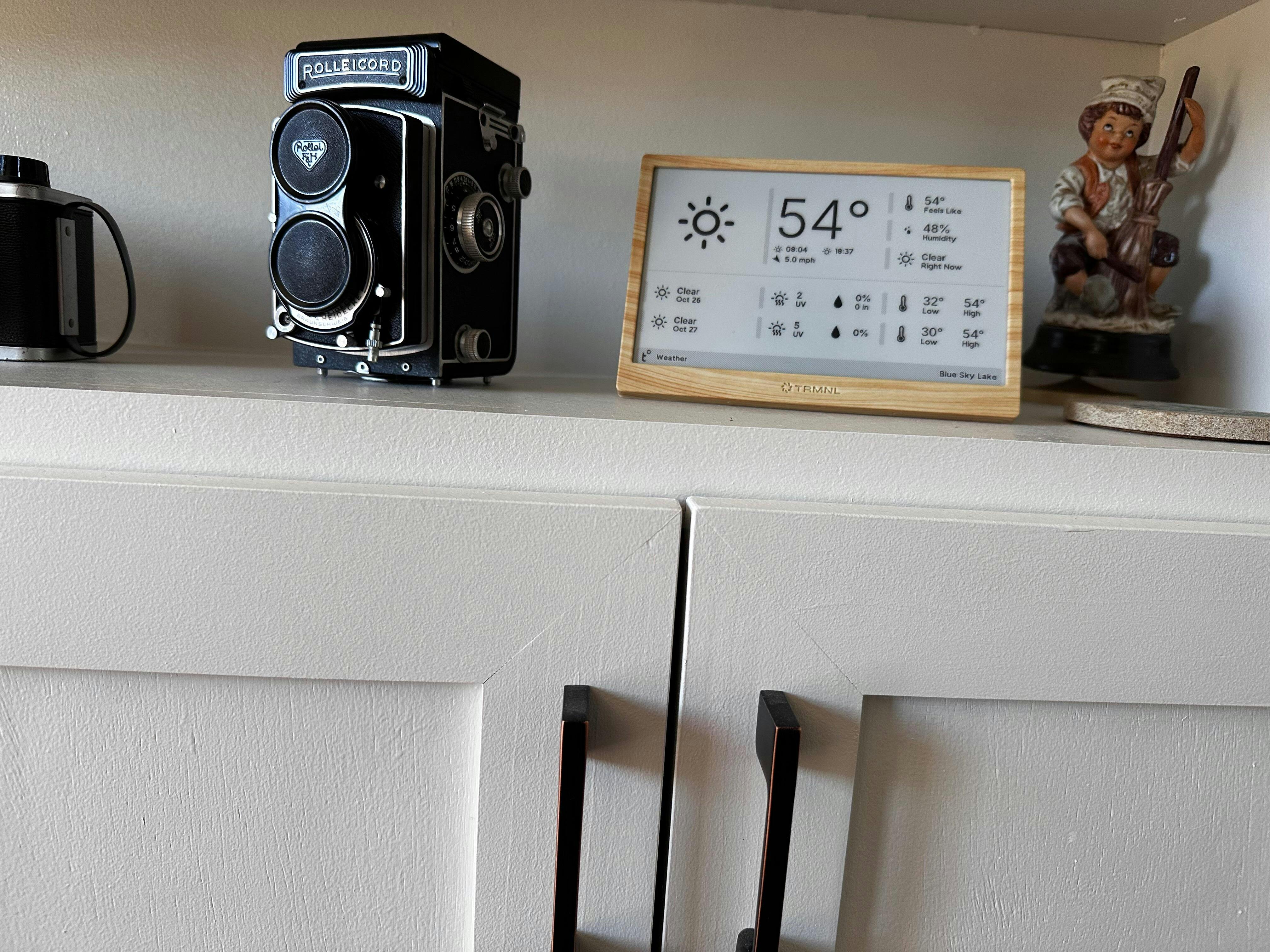 Bring your backyard Tempest weather to life with TRMNL, the original e-ink display designed to showcase your Tempest data in a bold, easy-to-read format. With its clean design and crisp contrast, TRMNL transforms your personal weather insights into a beautiful, always-on experience for any wall, desk, or shelf.